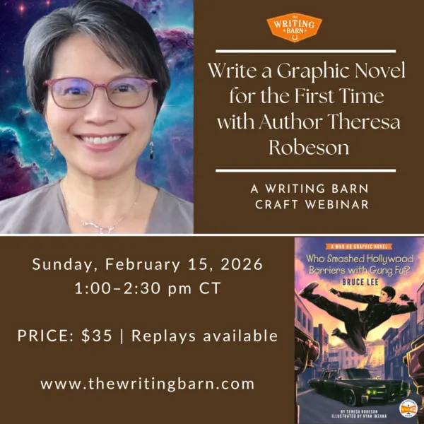 A 90-minute webinar introducing the basics of writing graphic novels for the first time. Led by Teresa Robeson, author of two biographical graphic novels with Penguin Workshop, this session demonstrates that writers don't need to be illustrators to break into the graphic novel market—there are opportunities for author-only ideas. The webinar covers: a short history of graphic novels, different age categories with examples, the script format debate, cinematic forms, and detailed step-by-step guidance for creating a first script. All content includes examples from Teresa's own books and recent publications. The graphic novel format has become hugely popular in U.S. publishing (DOG MAN, SMILE, Babysitters Club graphic novelizations). Perfect for picture book writers or novelists branching into graphic novels, teachers/librarians/literacy specialists interested in writing graphic novels, and illustrators wanting to combine visual skills with written storytelling.
