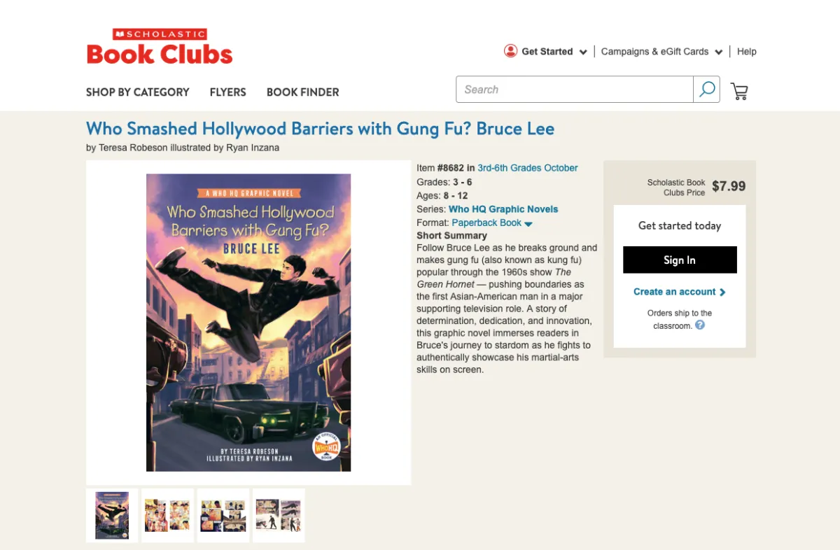 "Follow Bruce Lee as he breaks ground and makes gung fu (also known as kung fu) popular through the 1960s show The Green Hornet—pushing boundaries as the first Asian American man in a major supporting television role. A story of determination, dedication, and innovation, this graphic novel immerses readers in Bruce’s journey to stardom as he fights to authentically showcase his martial-arts skills on screen. This powerful tale is brought to life by gripping narrative and vivid full-color illustrations that jump off the page."